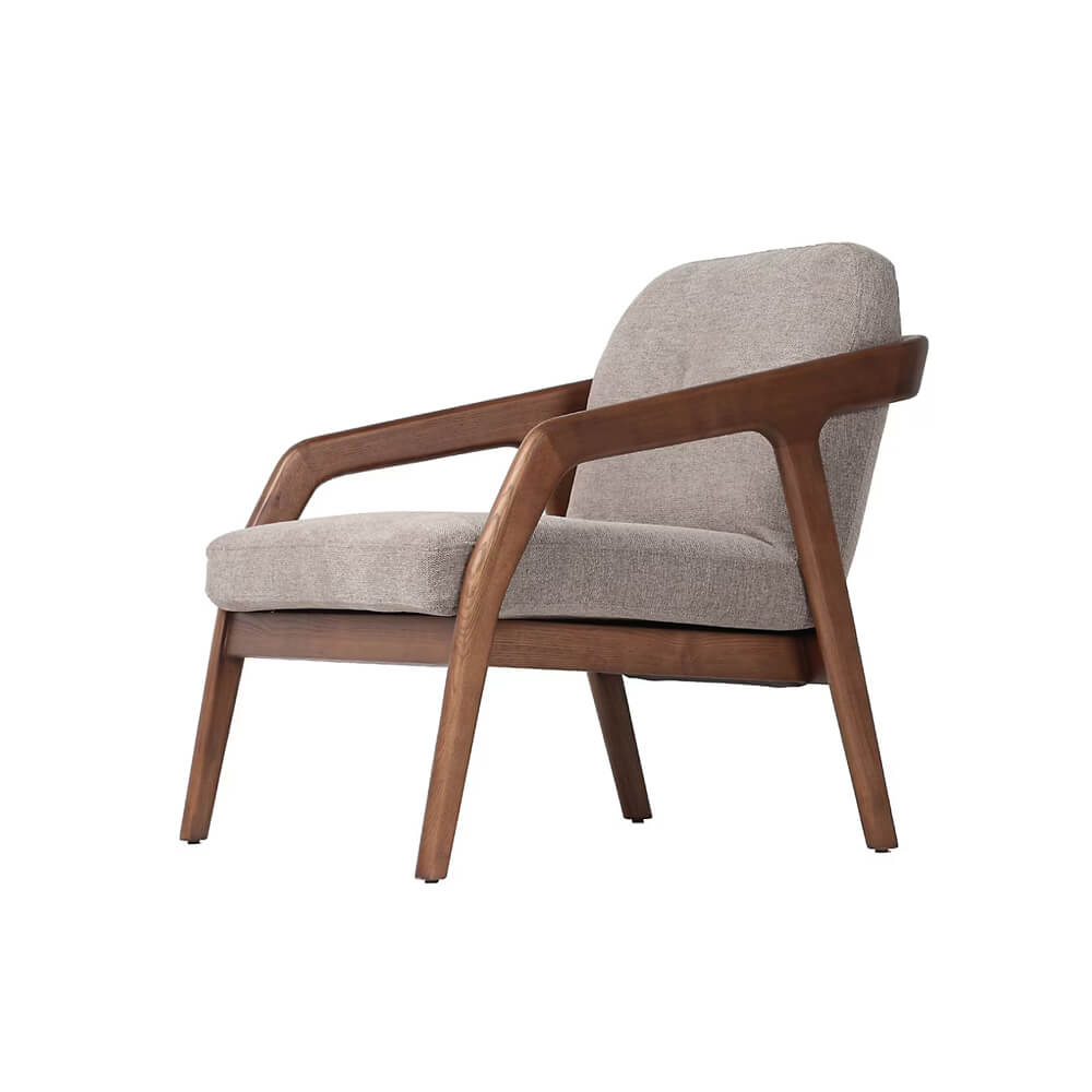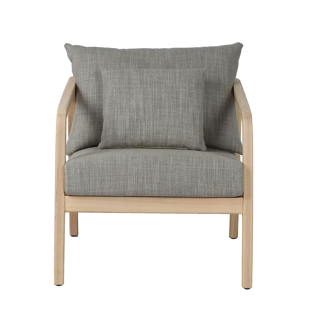 A compact accent chair with a stable hardwood frame and well cushioned seat. The profile balances clean lines with gentle curves for comfort in small or large rooms. Upholstery is smooth to the touch and the seat uses supportive foam for daily use. Glides protect floors and allow easy movement when cleaning. The chair pairs well with a sofa side table or reading lamp and fits modern and classic settings.
