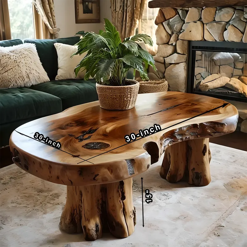 The structure is straightforward and strong. The legs are set to provide stability without crowding your knees. A slim apron supports the top and keeps the silhouette light. The design sits easily in minimal rooms bohemian spaces and rustic interiors. It also works as a low table for books and display in living rooms that prefer a gentle natural tone rather than a hard graphic edge.